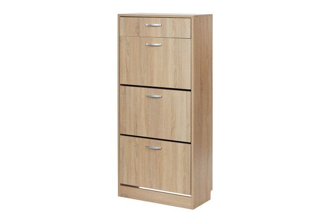 The combined shoe rack Jenny-3 provides maximum convenience and at the same time allows you to save space. The model consists of several departments. A drawer for brushes, creams and other products simplifies shoe care. Folding shelves help compactly arrange sneakers, shoes and slippers. Three spacious compartments can easily accommodate 27 pairs of shoes, which will be reliably protected from dust and attacks from pets. Moisture-resistant and durable materials ensure a long service life of the shoe rack.