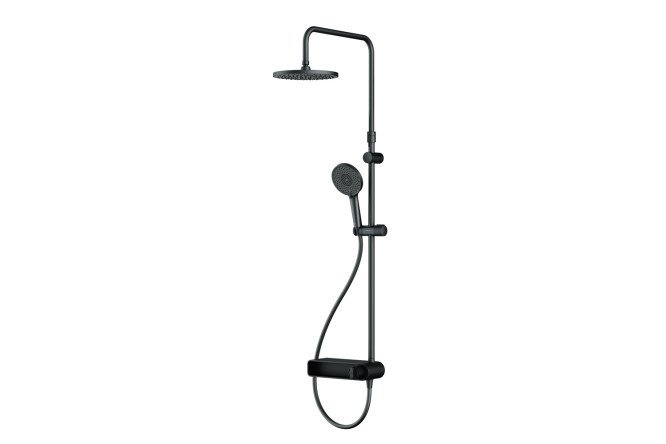 Consists of: – shower set – mixer-shelf on the wall – overhead shower on the wall