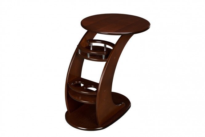 The Athena side table will make a family evening watching TV or in a home theater even more comfortable. A model with wheels can be rolled close to the sofa from the front or placed on the side, above the armrest. There is enough space on the countertop for a small tray with snacks, a remote control, and a tablet. The top shelf is equipped with a double-sided holder that will prevent objects and dishes placed on it from falling; the bottom double shelf has holes for glasses or glasses.