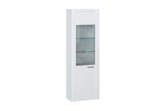 Single door cabinet ESTA Lacoste made of laminated chipboard, MDF coated with PVC, glass in white gloss color.