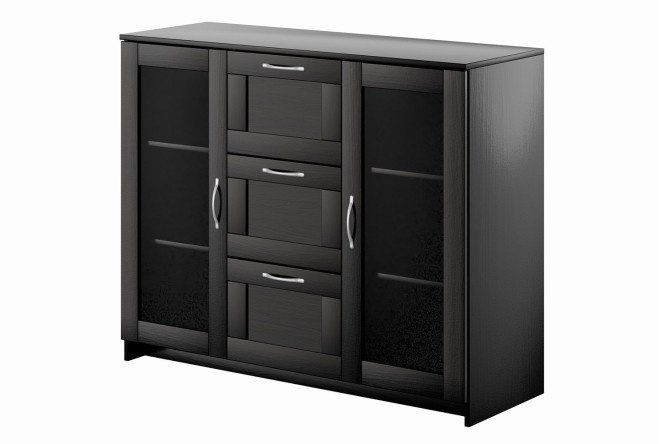 The Sirius cabinet will allow you to find a place to store items for various purposes – both decorative and those performing purely practical functions. Roomy and solid, the model at the same time does not look bulky thanks to glass inserts. The central part is reserved for drawers, in which you can lay out textiles for festive table decoration – tablecloths, runners, napkins. Two side sections serve as showcases for beautiful dishes, collections, and interior accents. Behind the hinged doors there are two shelves on each side. The strict geometry of the facades is enlivened by elegant handles.