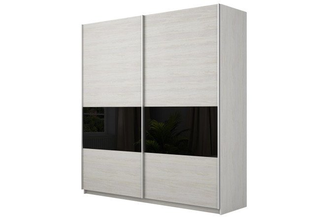 Sliding wardrobe 2-door Chester 220×230 cm, black gloss, light ash anchor, profile – silver