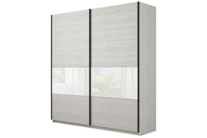 Sliding wardrobe 2-door Chester 220×230 cm, white gloss, light ash anchor, profile – black