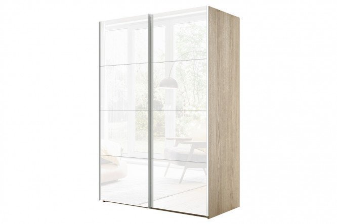 Sliding wardrobe 2-door Comet 160×220 cm Bardolino oak, white glass facades