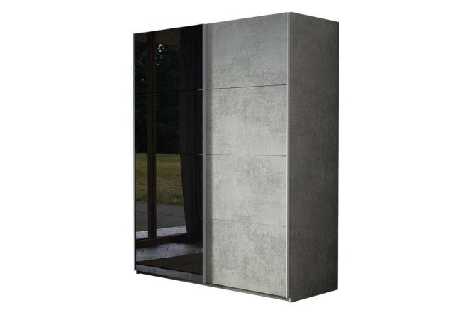 Sliding wardrobe 2-door Comet 160×220 cm facades light concrete, black glass