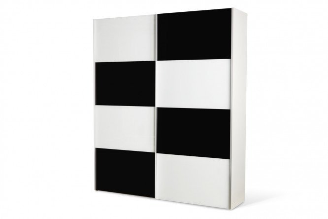 Sliding wardrobe 2-door Comet 160×220 cm white snow, facades white and black glass