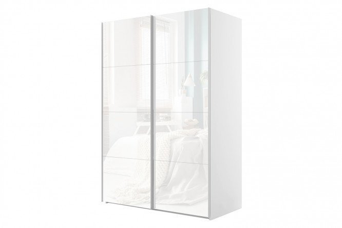 Sliding wardrobe 2-door Comet 160×220 cm white snow, white glass facades