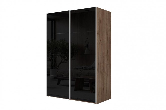 Sliding wardrobe 2-door Comet 180×220 cm kraft oak tobacco, black glass fronts