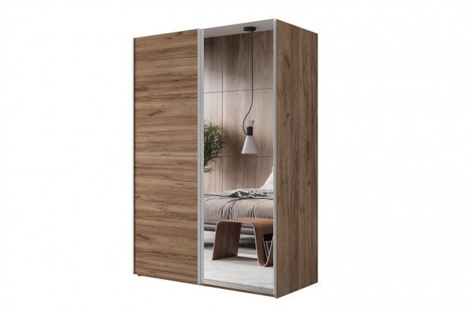 Sliding wardrobe 2-door Comet 180×220 cm kraft tobacco oak, mirror fronts, kraft tobacco oak
