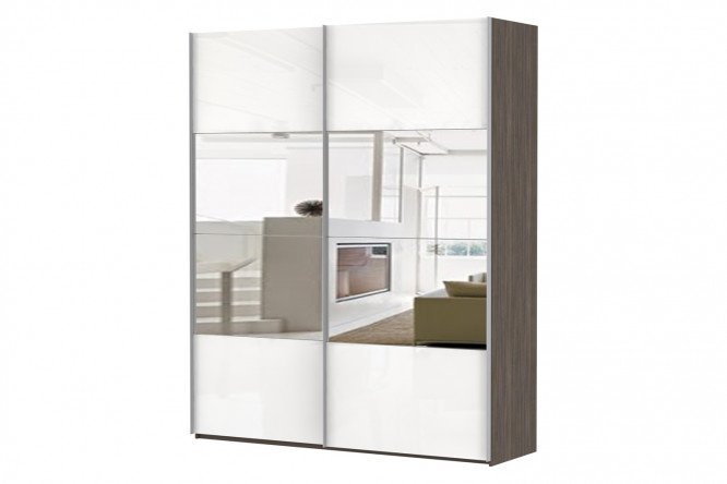 Sliding wardrobe 2-door Comet 180×220 cm wenge Mali, white glass facades, mirror