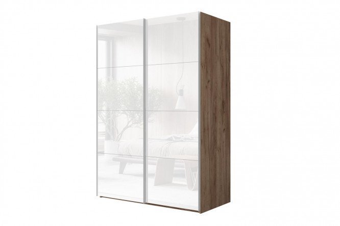 Sliding wardrobe 2-door Comet 180×240 cm kraft oak tobacco, white glass fronts