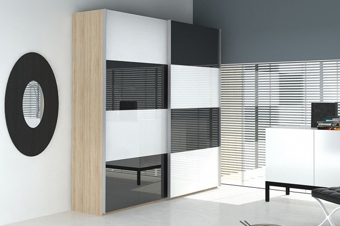 Sliding wardrobe 2-door Comet 200×220 cm Bardolino oak, white and black glass facades