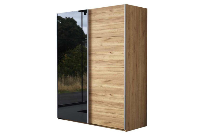 Sliding wardrobe 2-door Comet 200×220 cm kraft tobacco oak, black glass fronts, kraft tobacco oak