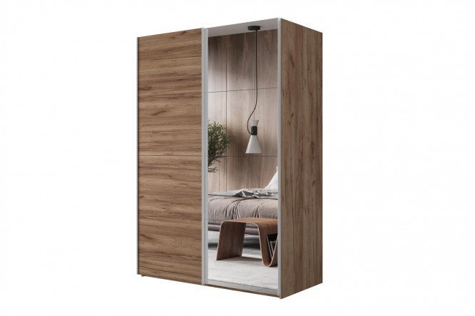 Sliding wardrobe 2-door Comet 200×240 cm kraft tobacco oak, mirror fronts, kraft tobacco oak