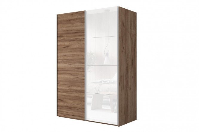 Sliding wardrobe 2-door Comet 200×240 cm kraft tobacco oak, white glass fronts, kraft tobacco oak