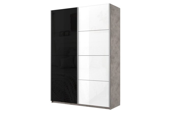 Sliding wardrobe 2-door Cors 140×230 cm, light concrete, white gloss facade, black