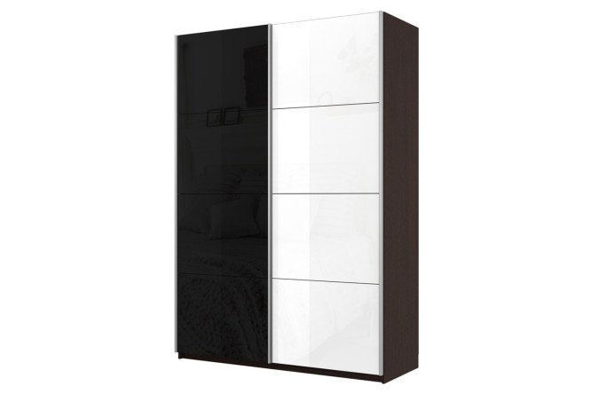 Sliding wardrobe 2-door Cors 140×230 cm, wenge, front facade black, white gloss