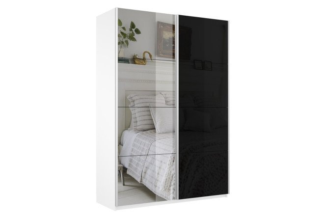 Sliding wardrobe 2-door Cors 140×230 cm, white snow, black facade, with one mirror