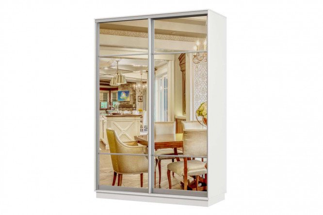 Sliding wardrobe 2-door Praktik 04 with a body made of laminated chipboard and a facade made of mirror material.