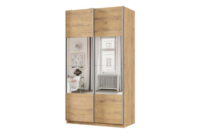 Sliding wardrobe 2-door Praktik 120x220x60 cm, bunratti, silver profile, with mirror inserts