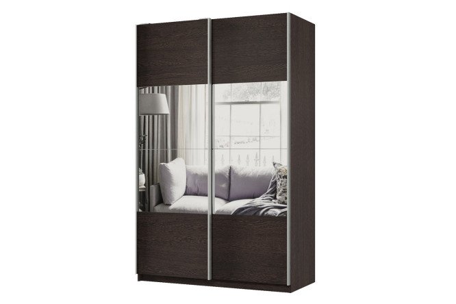 Sliding wardrobe 2-door Praktik 140x220x60 cm, light Shimo ash, silver profile, with mirror inserts