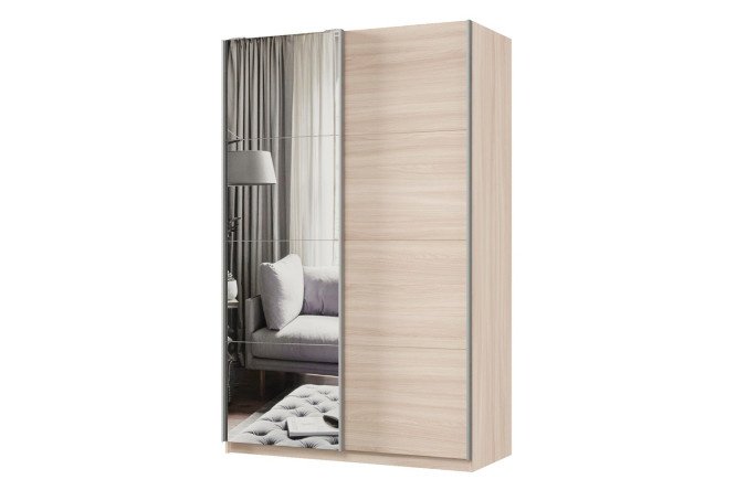 Sliding wardrobe 2-door Praktik 140x220x60 cm, light Shimo ash, silver profile, with one mirror