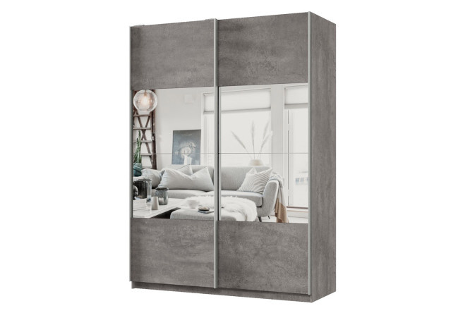 Sliding wardrobe 2-door Praktik 160x220x60 cm, concrete, silver profile, with mirror inserts