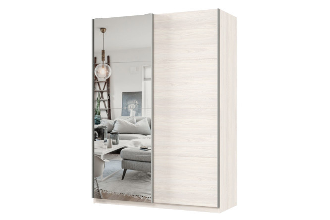 Sliding wardrobe 2-door Praktik 160x240x60 cm, light anchor ash, silver profile, with one mirror