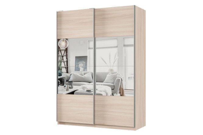 Sliding wardrobe 2-door Praktik 160x240x60 cm, light Shimo ash, silver profile, with mirror inserts