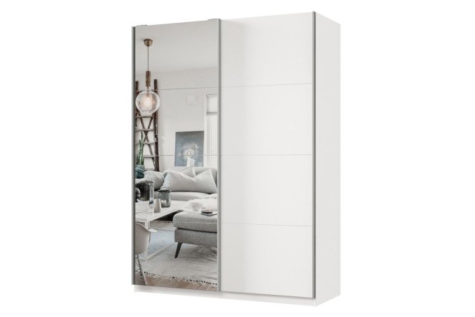 Sliding wardrobe 2-door Praktik 160x240x60 cm, white, silver profile, with one mirror