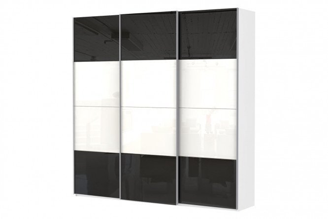 Sliding wardrobe 3-door Comet 240×240 cm white snow, facades white and black glass