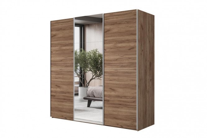 Sliding wardrobe 3-door Comet 270×220 cm kraft oak tobacco, mirror fronts, kraft oak tobacco