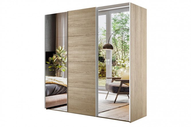 Sliding wardrobe 3-door Comet 300×240 cm Bardolino oak, Bardolino oak facades, mirror