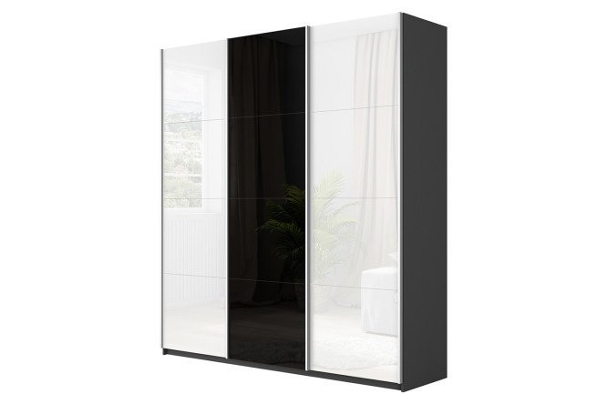 Sliding wardrobe 3-door Cors 180×230 cm, gray diamond, facade white gloss, black