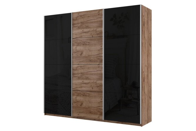 Sliding wardrobe 3-door Cors 180×230 cm, kraft tobacco oak, facade kraft tobacco oak, black