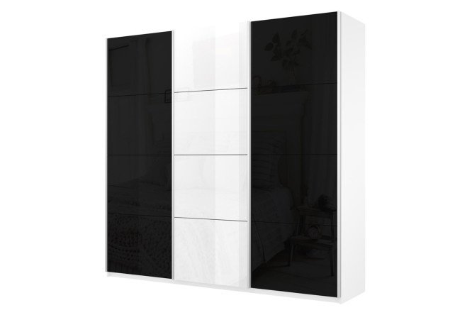 Sliding wardrobe 3-door Cors 180×230 cm, snow white, white gloss facade, black
