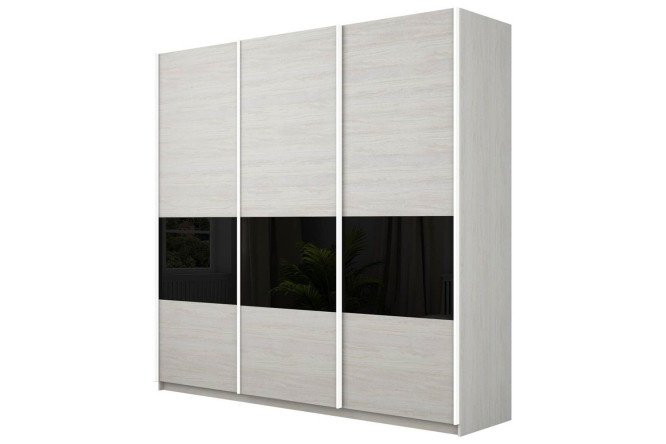 Sliding wardrobe 3-door Magnus 240×230 cm, black gloss, light ash anchor, profile – white