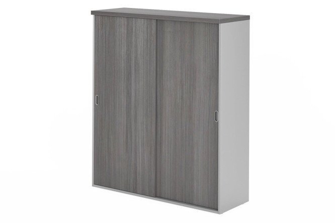 The FLASH sliding wardrobe is a modern interior element that is perfect for ambitious and energetic managers who prefer current trends and creative solutions. It is available in two colors – oak 131 and larch, which harmoniously combine with the gray aluminum frame. This cabinet will be a great addition to your office, providing order and style at the same time.