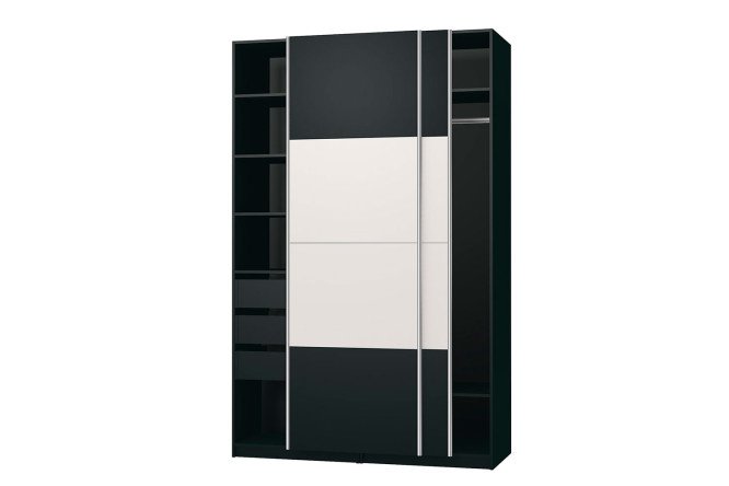 Sliding wardrobe Oscar 150x236x58 cm, black, with white inserts