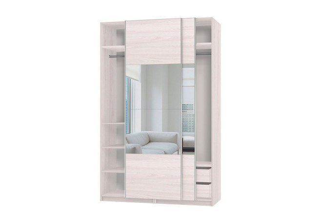 You can select and combine not only the internal contents, but also the external finishing options, which provides complete scope for creating a personalized design. Full-length mirrors, facades in white or wood decor, front fittings – the final say remains with the buyer.