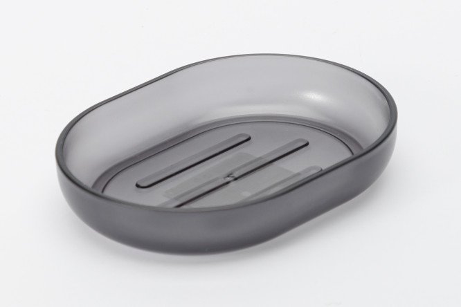 The Goldy soap dish makes storing bar soap practical and convenient. It is made of transparent dark gray polystyrene and is lightweight, durable and impressive in appearance. The high edges prevent the bar of soap from falling out, and the beautiful round shape fits perfectly into a modern bathroom interior. The soap dish is compact and stable; it can be placed on the edge of a sink or bathtub, or on a small shelf. The ribbed bottom prevents the soap from sliding and sticking to the surface. To create a harmonious space in the same style, you can combine the product with other items from the Goldy collection.