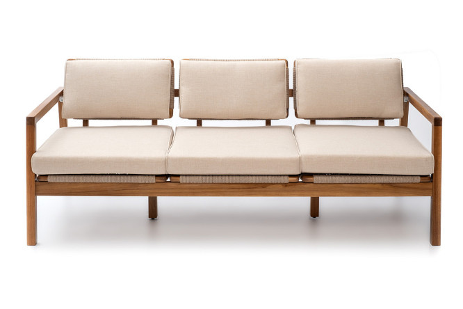 Sofa 3-seater Calisto 182x74x80 cm, frame color natural teak, beige finish