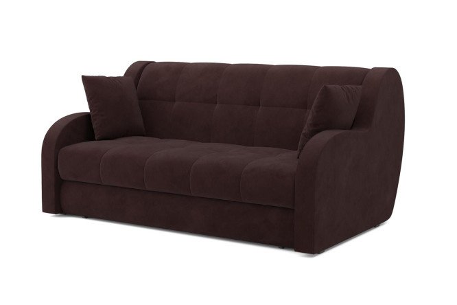 The MEBEL ARS “Adrian” sofa bed is an ideal choice for those who value comfort and style in the interior. This sofa will be a great addition to your living room or bedroom, providing cozy evenings in the company of friends and family. The smooth lines of the armrests and the refined velor upholstery give the model an elegant look that fits harmoniously into a variety of decor styles. The Adrian sofa is not only beautiful, but also functional. The “accordion” transformation mechanism allows you to quickly and easily transform it into a spacious sleeping place without creating height differences. This is especially convenient for guests and for those who want to make the most of the space in their apartment. When assembled, the sofa looks compact and does not take up much space, which makes it an ideal solution for small spaces. The seat base consists of slats that provide reliable support for the structure. The seat filling is made of polyurethane foam, which makes it comfortable and soft during use. Thanks to these qualities, the sofa is not only comfortable, but also retains its shape for a long time. The set comes with two decorative pillows that add extra comfort and style.