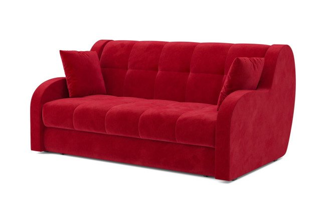The MEBEL ARS “Adrian” sofa bed is an ideal choice for those who value comfort and style in the interior. This sofa will be a great addition to your living room or bedroom, providing cozy evenings in the company of friends and family. The smooth lines of the armrests and the refined velor upholstery give the model an elegant look that fits harmoniously into a variety of decor styles. The Adrian sofa is not only beautiful, but also functional. The “accordion” transformation mechanism allows you to quickly and easily transform it into a spacious sleeping place without creating height differences. This is especially convenient for guests and for those who want to make the most of the space in their apartment. When assembled, the sofa looks compact and does not take up much space, which makes it an ideal solution for small spaces. The seat base consists of slats that provide reliable support for the structure. The seat filling is made of polyurethane foam, which makes it comfortable and soft during use. Thanks to these qualities, the sofa is not only comfortable, but also retains its shape for a long time. The set comes with two decorative pillows that add extra comfort and style.