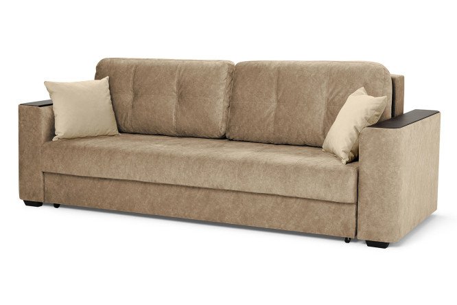 Amethyst sofa bed made of velor material (Kashmir) in the color “beige (117)”. The Amethyst sofa bed will help you rationally use the living room space and create an additional sleeping area for guests staying overnight. The advantages of the model are a spacious drawer for linen, lush back cushions and elastic seats with an […]