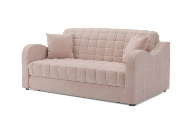 Sofa bed MEBEL ARS “ACCORDION ARON No. 4” is a stylish and functional solution for the interior. It combines modern design and convenience, making it an excellent choice for creating a cozy home. This model is made on the basis of a durable metal frame, which ensures reliability and durability. Thanks to the accordion mechanism, the sofa can easily be transformed into a comfortable sleeping place, and the retractable base allows you to place it close to the wall. The back of the sofa serves as a mattress, which provides a flat and spacious sleeping area. The sofa comes with two decorative pillows that add coziness and style. The beige color of the velor upholstery will fit perfectly into the interior, and its high abrasion resistance guarantees the durability of the product. The removable cover greatly simplifies the process of keeping clean.