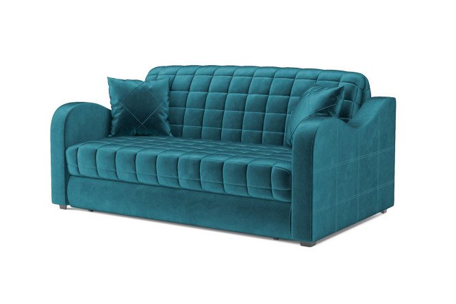 Sofa bed MEBEL ARS “ACCORDION ARON No. 4” is a stylish and functional solution for the interior. It combines modern design and convenience, making it an excellent choice for creating a cozy home. This model is made on the basis of a durable metal frame, which ensures reliability and durability. Thanks to the accordion mechanism, the sofa can easily be transformed into a comfortable sleeping place, and the retractable base allows you to place it close to the wall. The back of the sofa serves as a mattress, which provides a flat and spacious sleeping area. The sofa comes with two decorative pillows that add coziness and style. The blue-green color of the corduroy upholstery will fit perfectly into the interior, and its high abrasion resistance guarantees the durability of the product. The removable cover greatly simplifies the process of keeping clean.