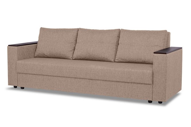 The strict forms of the Atlanta sofa are softened by the lush back cushions, the relief of which is formed with the help of weights. Solid pads on the sides act as a side table: you can place a small tray with coffee cups on them, put a book or a charging gadget on them.
