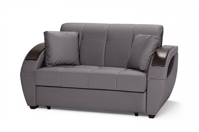 The Montreal sofa bed is comfortable and elegant. The seat and back are quilted, the semicircular armrests are covered with linings made of dense polymer, which accurately conveys the texture of valuable wood. Thanks to the elastic filling, soft upholstery and decorative pillows, it is comfortable to relax on the sofa during the day, and with the help of the transformation mechanism it quickly turns into a full-fledged sleeping place.