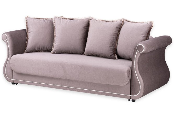 The RAMART DESIGN Durham sofa bed is the perfect combination of style and functionality. With the Eurobook transformation mechanism, it easily turns from a sofa into a comfortable sleeping place, providing convenience for both relaxation and sleep. The upholstery material is made of wear-resistant velor. The sofa offers a spacious sleeping area with a width of 140 cm. The Eurobook mechanism ensures ease of unfolding: just pull the seat loop and lower the backrest. There is a spacious storage box under the seat, making it even more practical. The seat filling includes an independent spring block “Pocket Spring”, which provides medium surface rigidity. The sofa is equipped with two armrests decorated with twisted piping, and the set includes four pillows in removable covers, which makes it easy to keep clean. The fabric on the cushions is decorated with fringe, which gives the sofa a stylish look.